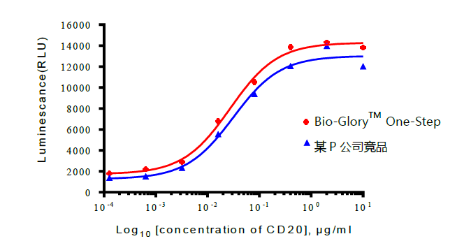 Bio-GloryTM One-Step 螢火蟲熒光素酶分析試劑盒超高的發(fā)光強度主要適用于ADCC、ADCP活性的常規(guī)檢測及批簽發(fā)檢測指標。是抗體篩選、抗體糖基化修飾等研究的有效手段。同時,在對檢測靈敏度有更高要求時,該試劑盒也可用于小分子化合物、重組蛋白藥物活性的常規(guī)檢測,如用于IFN、EPO、FSH、TSH、GH、GLP-1、PTH等藥用蛋白的生物學活性檢測。